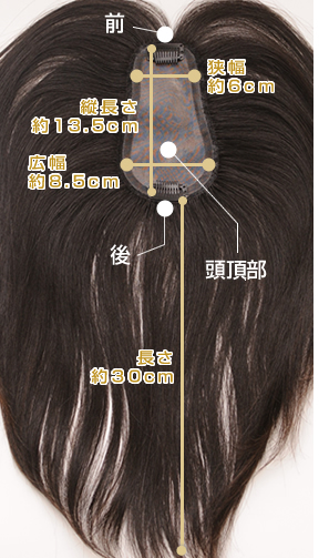 横方向(一番細い所)約6センチ・約8.5センチ程度(一番広いつむじ付近)